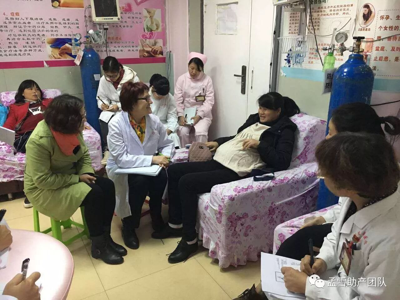 产科医生、助产士、产科护士共分为六个小组,一个小组跟着专家看诊一天,上午实践,下午进行问题讨论。