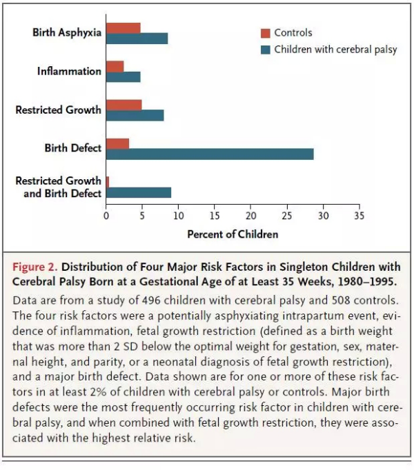 NEJM的一篇综述中,作者讨论了发达国家中足月或近足月分娩的儿童产前因素是脑瘫风险重要的决定因素。