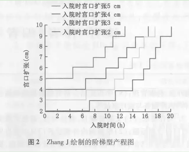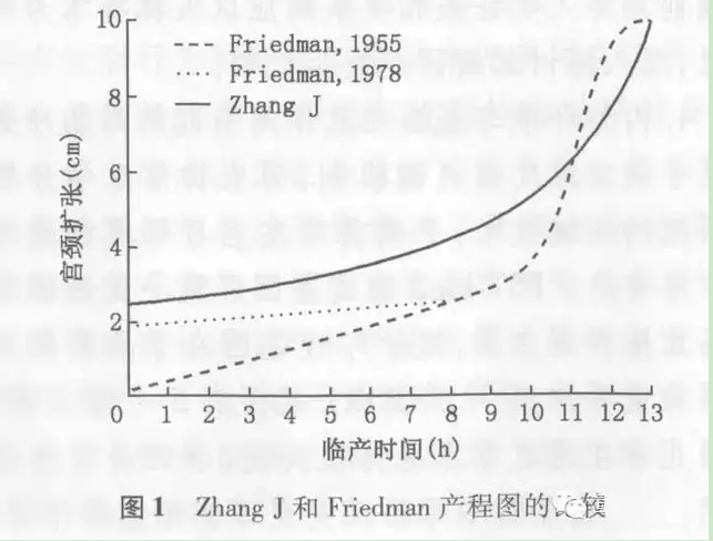 2002年Zhang等应用现代统计学方法重新评价了1,329名头位、自发性临产且具有良好母儿结局的初产妇分娩曲线,根据研究结果绘制的产程图与 Friedman 的产程图有迥然的差异。