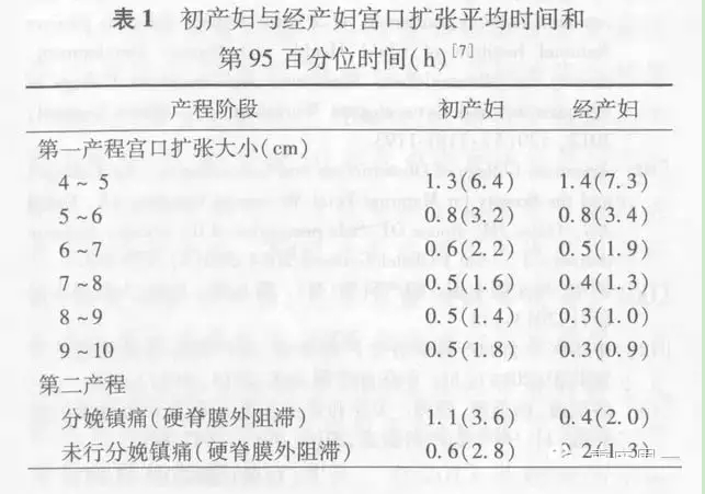 (4)应该应用正常分娩时限的上限值(第95百分位数)来制作产程异常曲线帮助判断产程(表1),而不是既往以偏离正常均值曲线 (Friedman 曲线)来判断。