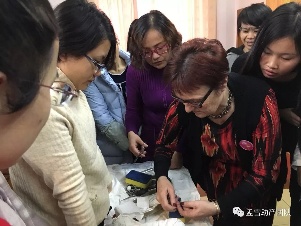 孟雪助产团队进驻田东中医院第五十一天。在助产技术模块的培训中,爱琳教授教大家会阴缝合技术。爱琳教授从会阴解剖到会阴撕裂的分级及预防会阴撕裂的方法,让后买了大量的海绵让大家训练练习。在众多缝合方法中,我特别喜欢荷包缝合法,在这里与同仁们分享一下。