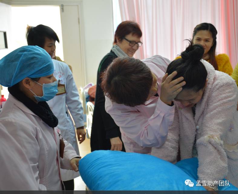 12点下课后 ,孟雪老师和艾琳教授来到产房。孟雪老师 第一眼就看到娜娜表情痛苦、弯着腰、头发蓬散、不时还有吆喝声。孟雪老师来到她的身边,轻轻握住她的手,问她当下的感觉,她说很疼、很无助,有大便的感觉。