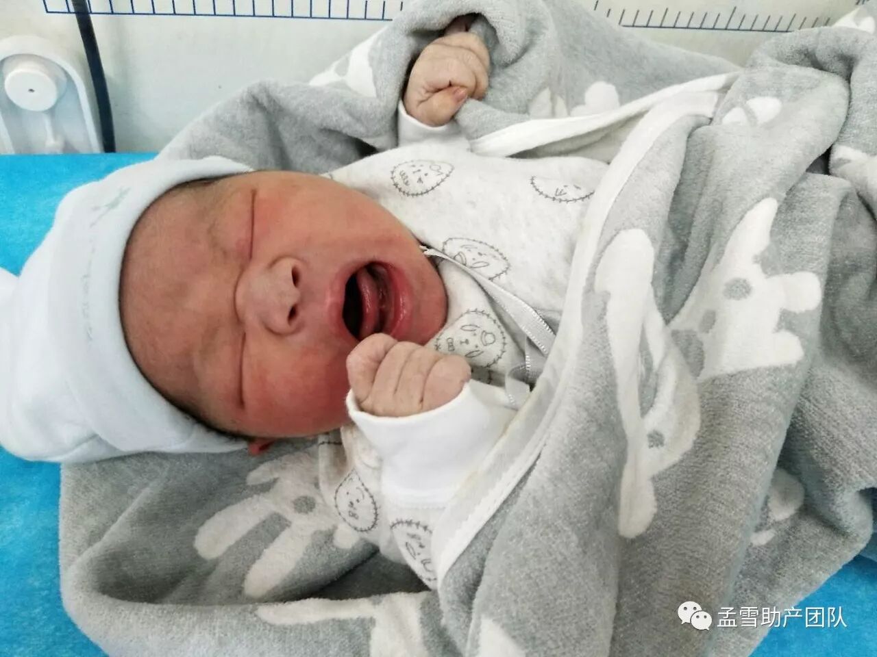 第一胎的妈妈比较年轻,一直不停地吃饭,体力非常好。羊水浑浊,很稠很稠的羊水,可以足以诊断为三度污染,痔疮比较明显。但是胎心良好,跳动很有力。一直给予自由体位,助产士陪着她不断询问她的舒适度。宫口开全胎头剥露后,助产士开始上台接生。分娩顺利,胎儿哭声大,浑浊的羊水很粘稠,口鼻也有浑浊的羊水,擦干后立马与妈妈进行皮肤接触。母婴平安。