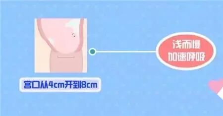 浅的呼吸:①完全放松;②眼睛注视一定点;③微张开嘴巴吸吐;④保持高位呼吸,在喉咙处发声;⑤呼吸速度依子宫收缩强度调整;⑥吸及吐的气,一样量,以免换气过渡;⑦连续4-6个快速吸吐再大力吐气,重复至收缩结束。 口令:①②④⑤同胸式呼吸,③嘻嘻嘻嘻吐 嘻嘻嘻嘻吐 嘻嘻嘻嘻吐 ……