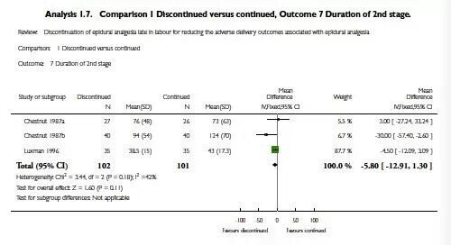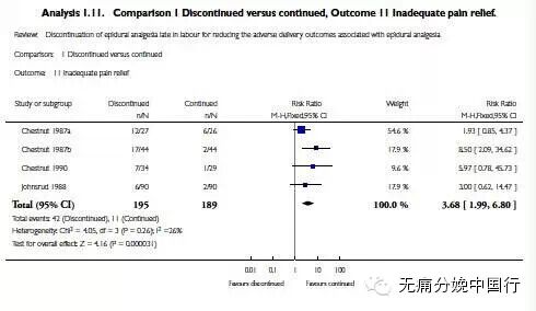 答:从研究看,产程没有因为停泵而改变第二产程归宿(停和不停一个样 - "1"在最后的95%区间内)。请看Corchrane荟萃分析的数据。注意:美国的产程图是2003年第一次改变的,所以下面的数据正是反映当今中国的现状。