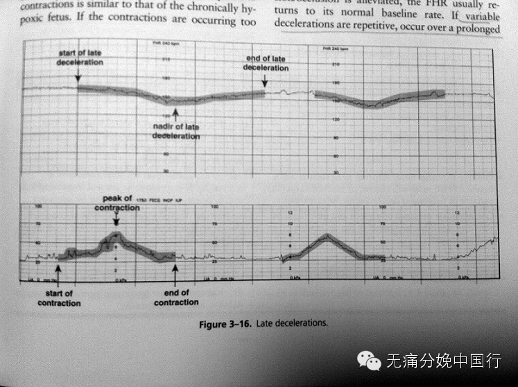 晚期胎心减速是与宫缩不对称、逐渐发生的。与宫缩不相关对称是指胎心减慢开始、最低点和恢复是在宫缩开始、最强和结束后发生。逐渐发生是指从胎心开始减慢到最低胎心时间超过30秒钟。一般认为是胎盘功能不良的表现。↓↓↓