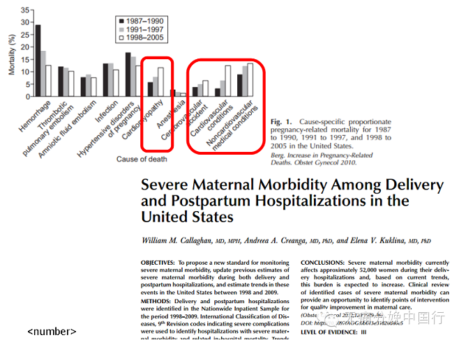 美国从1987年至2005年的全国统计中发现,随着产后大出血退出产科首要死亡原因后,从红框中看到,心血管性疾病和其他内科伴随病的死亡相对比例增高,成为我们面临的大问题。而这些问题需要由麻醉医生的介入提高母婴安全性。