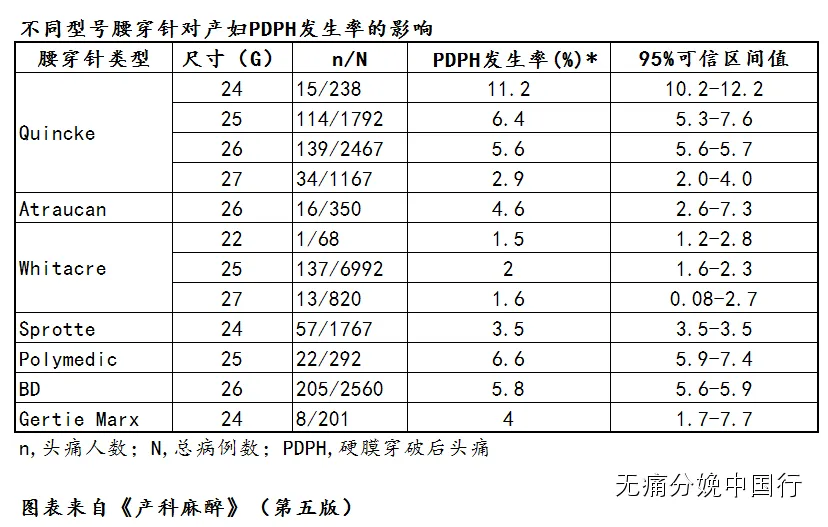 PDPH 其它危险因素包括年龄、性别、体重、妊娠、穿刺针类型及尺寸,以及穿刺次数。