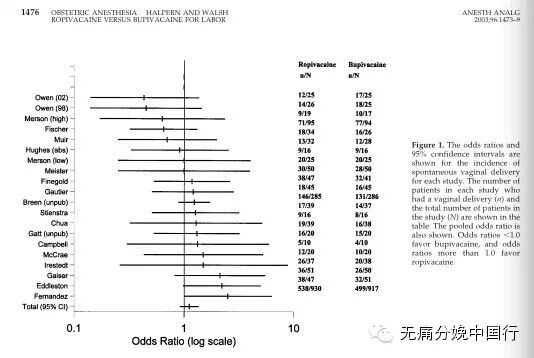 答:人们没有忘记这个最实质性的问题。2003年一篇荟萃分析,发现了96篇文章讨论这个话题。通过筛选,用了20篇文章,累计930 产妇采用罗哌卡因、917为布比卡因,分析发现比值比是1.17(95%可信区间 0.96–1.44,P=0.12)。初产妇、经产妇都没有改变阴道分娩率。