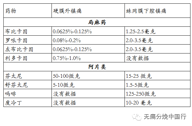 用于椎管内分娩镇痛药物的起始剂量