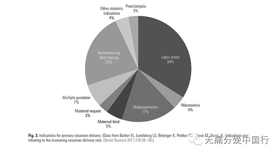 列为前三位的包括:第一/第二产程停滞(34%),胎儿窘迫(23%),胎位不正(17%),其中,3%是产妇自己要求的。从产妇角度,经阴道产,产后恢复快,24-48小时即可出院,3天后,产妇即可自己带小孩去看小儿科医生。剖宫产对产妇来说是哭鼻子的事。过去10年中,作者只见到过一例自己要求剖宫产的。即,剖宫产几乎都是有医学指征的。美国和西方国家统计发现,近年来剖宫产率也是呈上升趋势。产妇过度肥胖,剖宫产后再次妊娠(怀孕),待产中全程采用自动宫缩-胎心监护仪导致的过度诊断胎儿窘迫等是剖宫产率上升重要原因。