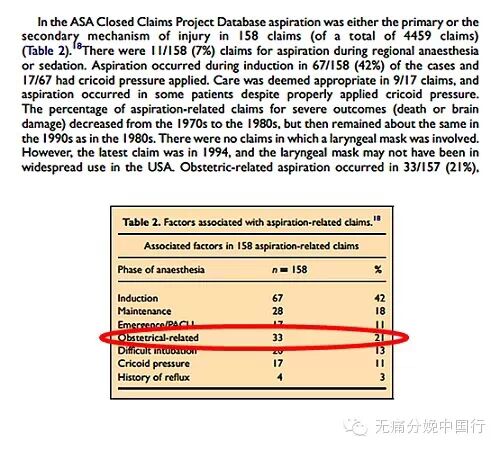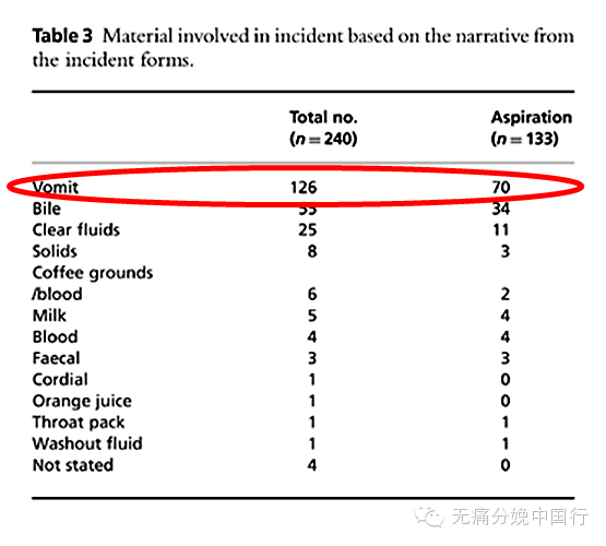 美国产科误吸的医疗纠纷占了麻醉全部纠纷的1/5以上。