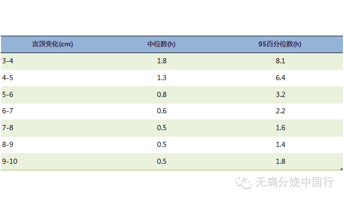 表2:自然临产分娩初产妇宫颈每扩张1cm所需的时间