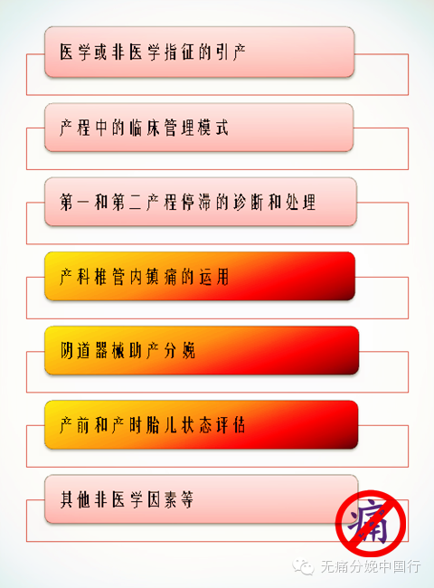 虽然,有研究提示使用椎管内神经阻滞镇痛(硬膜外、腰麻或腰硬联合)可能会延长产程,但是,随后大量的临床试验都未发现在引产或自然临产分娩过程中运用椎管内镇痛增加了剖宫产率。因此,不应因担心增加剖宫产的风险而放弃或推迟使用椎管内分娩镇痛。