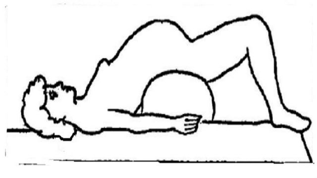 包括膝胸卧位(图1)、反屈姿势法、臀先露自行纠正法及分娩球法等,均是通过改变体位,借助重心的改变使胎儿由臀先露转变为头先露。反屈姿势法是将孕妇臀部上举30~35 cm , 并以臀为中点, 头、足自然下垂, 使身体向背侧屈曲(图2)。臀位自行纠正法使孕妇臀部垫高后小腿自然下垂在床沿。分娩球法是孕妇坐在分娩球上做前、后、左、右的旋转运动或上下弹动。国内报道的各种改变体位矫正臀先露方法成功率均很高,如姜建华观察妊娠32~34 周臀先露初产妇50 例,在医务人员指导、胎心监护下做膝胸卧位,46 例纠正为头位,占82%; 范榕榕等用臀先露自行纠正法治疗105 例臀先露孕妇,成功92 例,占87.52%;付建英和刘迎军报道,分娩球操组臀先露纠正率为91.67%。但是,这些研究的研究对象均没有随机非配,或有随机分配但没有隐藏随机化方法以及没有采用盲法等,导致研究的总体证据质量不高。